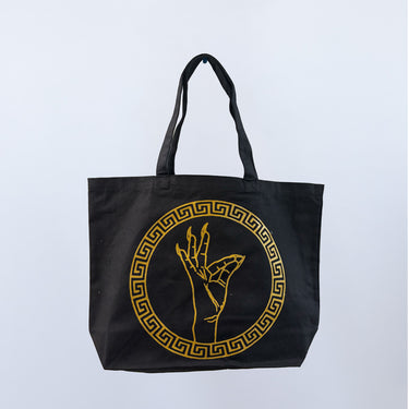 For the Laganja lovers, the tote-bag collectors, and smokers with sh*t to get done. This black, cotton tote has a hook and loop closure to fit everything for to get you through the day and own the night.